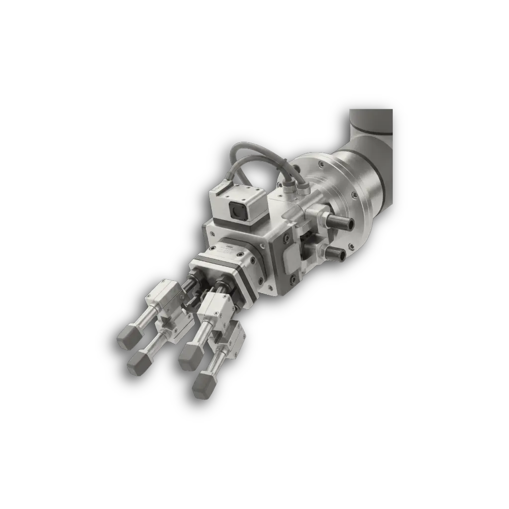 Greifersysteme bzw. End-of-Arm-Tools (EOAT) bilden die Schnittstelle zwischen dem Roboter und der Anwendung ab. Unabhängig von der Art des Greifers (z.B. Vakuumgreifer oder Parallelgreifer) sind hier vor allem die präzise Elektronik und Sensorik entscheidend. Darüber hinaus müssen die Greifer eine hohe Modularität und Medienintegration aufweisen und individuelle Anpassungen erfüllen, um verlässlich Werkzeuge und Bauteile greifen bzw. verarbeiten zu können. assemblean unterstützt bei den Greifersystemen schon von Beginn an bei dem Prototypenbau und begleitet die Optimierung mit individuellen Feedback bis hin zur serienreifen Produktion.